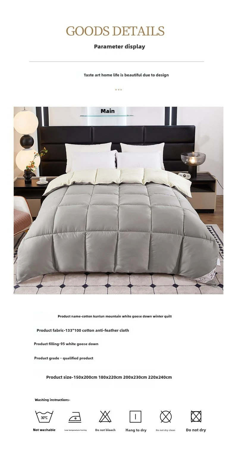 Selected 133*100 cotton anti-feather fabric, comfortableplaid brings good sleep all night long