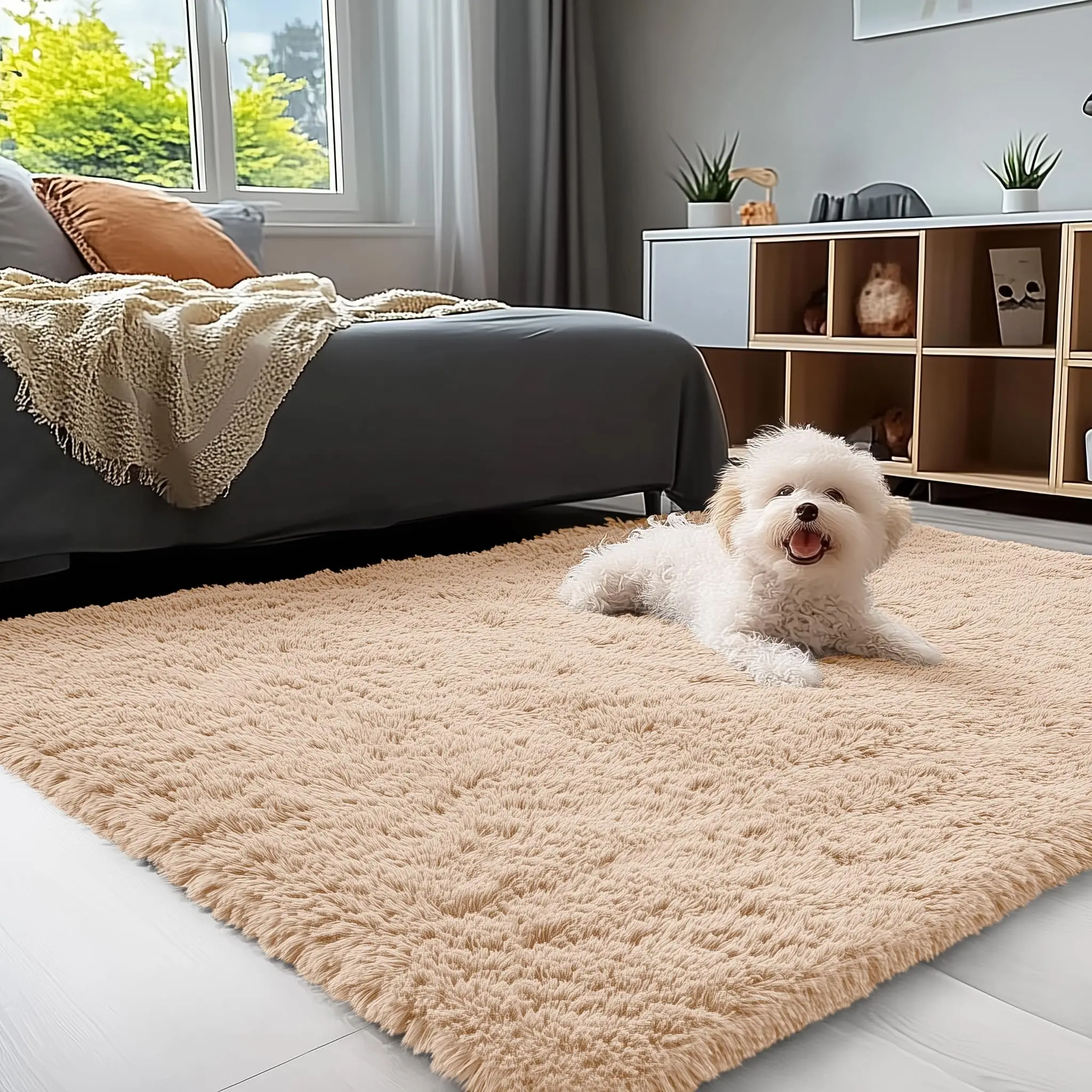 [Family-Friendly for Kids and Pets] Our rug is made from soft, eco-friendly polyester, ideal for homes with children and pets. The plush texture offers comfort for barefoot walking and tummy time, and the vibrant color and furry appearance add fun to any room.
