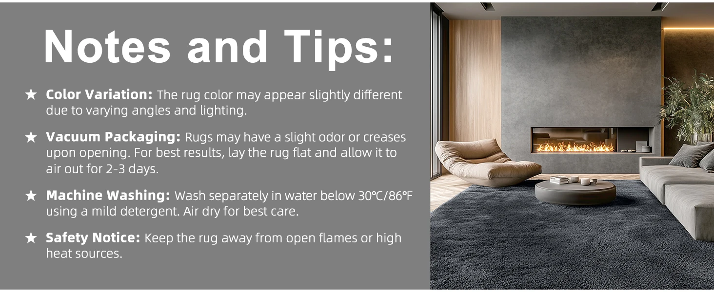 [Usage and Care Instructions] OLANLY Rugs are vacuum compressed for eco-friendly packaging. They may appear less fluffy and have creases upon arrival. Lay flat for 2-3 days to restore their full fluffiness. For machine washing, use cold water (under 30℃/86℉) with gentle detergent and air dry.